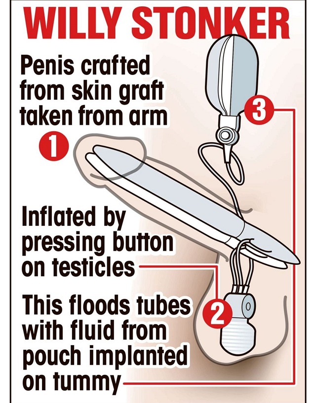 Et pour ceux qui se demandent comment fonctionne un pénis bionique, celui-ci se gonfle grâce à un bouton situé au niveau des testicules. Le schéma (en anglais) ci-dessous montre « la marche à suivre ».